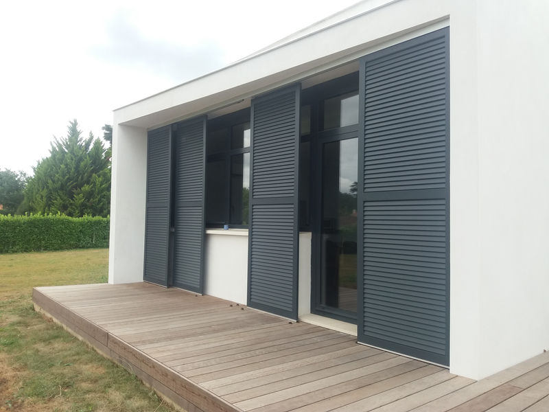 L’extension prend la forme d'un rectangle de plain-pied coiffé d’un toit terrasse et recouvert d'un enduit gratté de couleur blanc cassé. Les façades Est et Ouest sont totalement vitrées et habillées de brise-soleils métalliques coulissants sur rails.