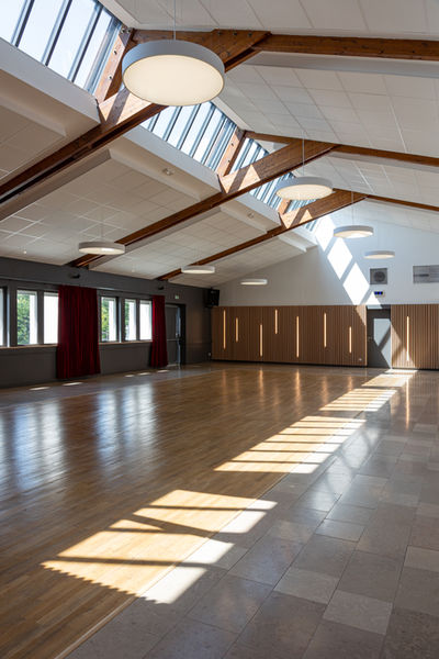 Rénovation d’une salle des fêtes et extension du bâtiment. Aménagement paysager des abords.